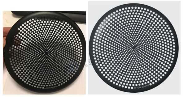 首先,我们看图分析孔的变化规则:由中心往外渐变,孔径、每圈距离、每圈数量都在增加。