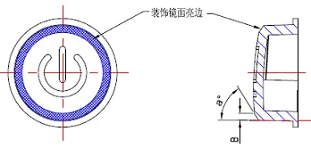 在要求电镀件装饰斜边为镜面亮边的情况下,图9-1中斜边角度取值应选择为a>45°,否则此边在实际效果上是黑边,并不会有镜面亮边效果,B值根据ID设计要求取值。