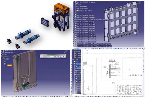 金属结构专业设计人员按照本项目的设计流程,依据闸门、钢管控制条件,初步拟定其主要尺寸,利用模板参数化在VPM金属结节点下完成装配成闸门、钢管和启闭机,并将主要结构件导入仿真计算软件优化设计,最后利用BIM生成工程图。如图9所示。