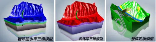 利用地质建模(Geological Object Computer Aided Design, GOCAD)软件将地质勘察的原始资料整理到GOCAD软件中[11],通过软件和分析完成地质模型的建立,并根据水利工程特点的需要建立了风化模型和吸水率模型,满足大坝设计需要。