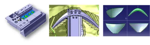 该设计图纸已应用到实际施工中并已完成坝肩及坝基开挖,与现场符合性良好,工程量准确。大坝设计利用CATIA强大的曲面设计能力,按水工设计的习惯,根据曲线方程形成拱圈,拟合形成抛物线型拱坝坝体,通过BIM软件求出曲面交线,确定设计尺寸,减少手工计算工作,大大提高了设计效率,如图6所示。