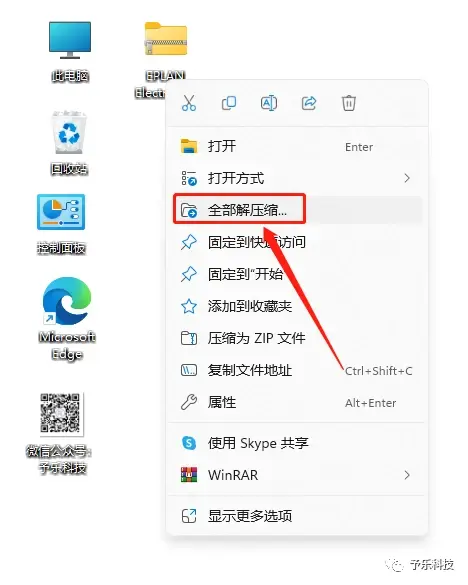5.鼠标右击【EPLAN Electric P8 2023(64bit)】压缩包(win11及以上系统需先点击“显示更多选项”)选择【解压】。