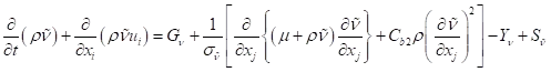 G是湍流粘度的产生,Y是在近壁区由于壁面阻塞和粘性阻尼而引起的湍流粘性的破坏,S是用户自定义的源项。(niu)是分子运动粘度。(西格玛niu波浪)和(Cb2)是常数。注意,由于SA模型中未计算湍流动能,因此在估算雷诺应力时,表达式中的最后一项(含湍动能项)被忽略。