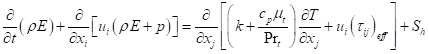在ANSYS Fluent中,湍流热传输采用雷诺类比湍流动量传递的概念进行建模。“建模”能量方程如下所示: