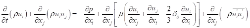 上面两个式子合起来叫做RANS方程。他们与瞬时NS方程具有相同的形式,速度和其他解变量表示系综(时间)平均值。多出来的最后一项表示湍流的影响, 雷诺应力必须被建模以封闭时均动量方程。