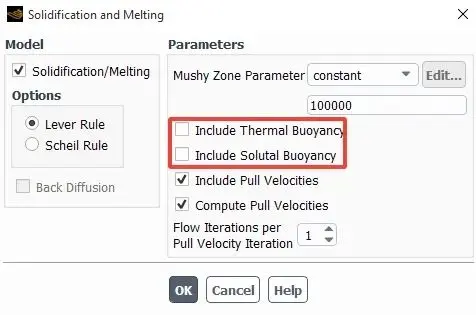 Thermal Buoyancy和Solutal Buoyancy对于溶液凝固问题影响较大,需要考虑