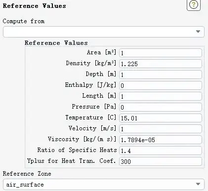 这里的参考值,在Fluent中的Reference Values可以看到,我们在文章三十五、Fluent阻力系数问题中也有提到。