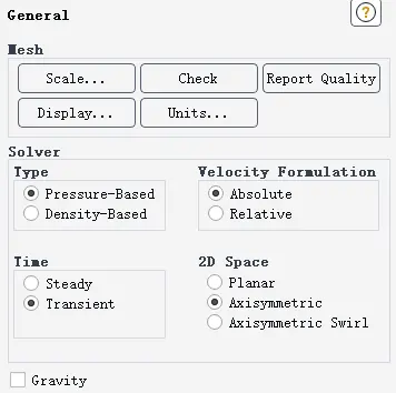 勾选Transient和Axisymetric;