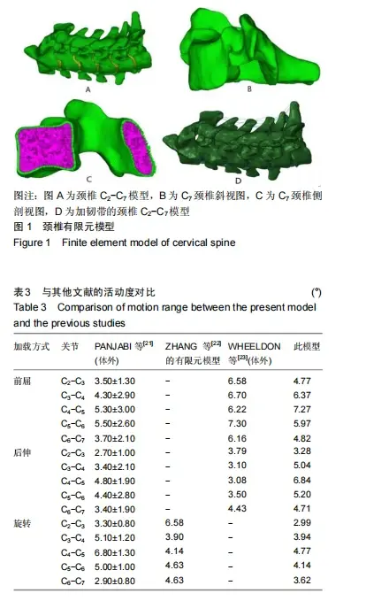 例如,刘伟聪等[33]建立了加韧带具有66万多网格的全颈椎模型,轮廓拟合度高;陈群响等[34]建立了带肌肉的全颈椎三维模型,网格数量近79万,进一步完善了模型。
