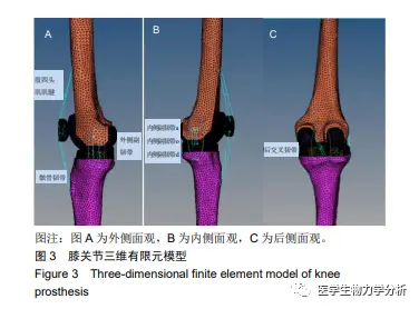 背景:人工膝关节置换后因为假体的失效部分患者的满意程度不高。造成膝关节假体早期失效的原因有高 分子聚乙烯垫衬的早期磨损、假体松动与假体失稳,且均与假体的接触压力有关。