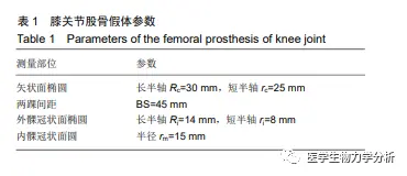 1.4.1 膝关节假体有限元模型 采用文献[21]中的膝关节 假体数据创建股骨组件,见表1,