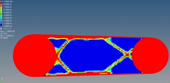 将上面定义的响应中的体积分数,设置一个上限为0.2的约束,即橙色部分最终优化后,体积减少80%以上