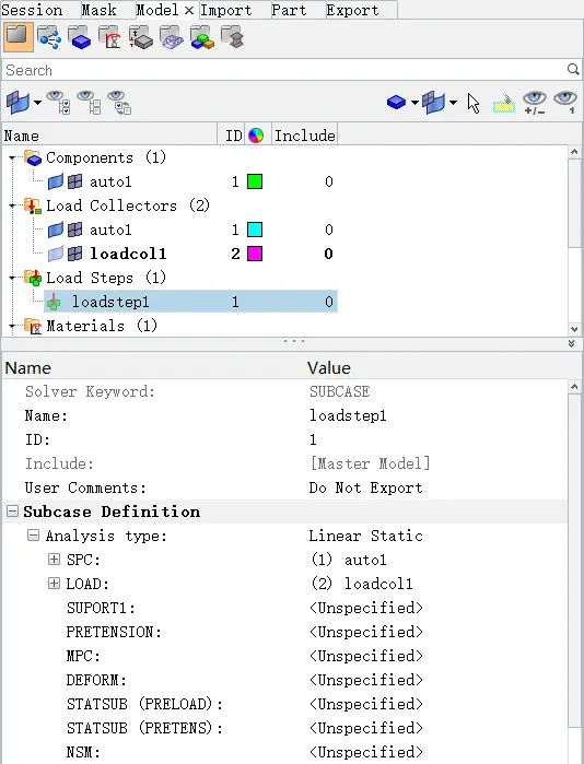 创建工况,设定分析类型,完成边界条件,载荷条件施加。最后导出求解,如图8。