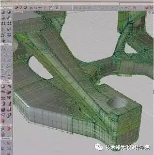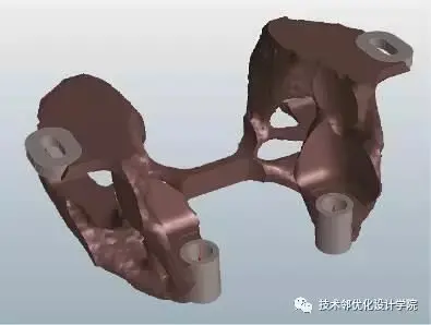 作为第一步,是使用 solidThinking Inspire®进行分析,这个过程之前都是用有限元软件 Altair HyperWorks®来完成,而 Inspire 与之结果完全一致。为了提高整体设计中,同时优化材料的使用率,此时就要定义需要进行优化的空间,随后进行拓扑优化。