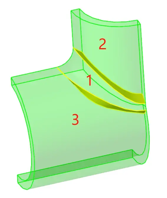 (3)下面是区域3网格的生成。这里网格的生成方式和上步一样,故不在赘述。此步难点在于对外圆柱面的切分,切分的方法并不唯一,可以参考图6所示的切分。