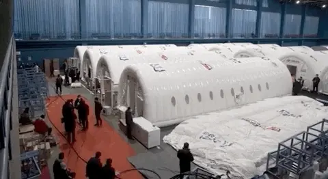 连日来,河北省石家庄市出现多例新冠肺炎本土确诊病例。6日,石家庄在全市范围内全面启动全员核酸检测。8日,每日最高可检测样本量达100万人份的“火眼”实验室(气膜版),在河北体育馆网球馆建成投用。当日零时许,实验室开建,仅用10小时基本建成,21小时投入使用。当日21时45分,检测人员准备进入实验室开始工作,为石家庄核酸检测工作提供重要助力。 与此同时,石家庄华大医学检验实验室、车载“火眼”实验室均已就位,已于8日启用。每日最高可检测样本量达到100万人份此次驰援河北的高通量气膜“火眼”实验室由12舱“火眼”实验室(气膜版)和3舱快装式负压硬气膜“火眼”组成。