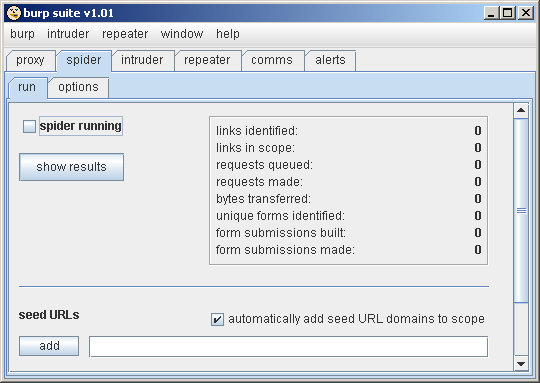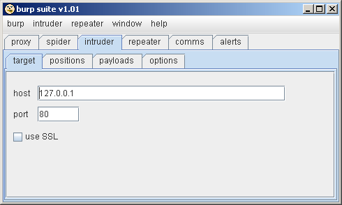 在本地架设代理服务器以截获并修改浏览器发出的请求。默认设置为 127.0.0.1:8080。使用时只要将浏览器的代理服务器设置为 127.0.0.1:8080,burp proxy就会截获到浏览器发出的请求,并可方便地进行修改之后再向原网站发出,以达到篡改cookie、URL、form等目的。