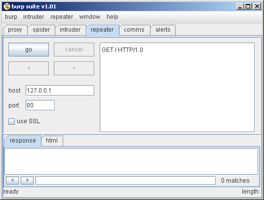 burp repeater可以将同样的请求多次发送。你可以不断地修改请求的各种参数并发送,以寻找最好的攻击方法。