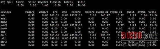安装完成后,我在其中的一台机器源码安装了MySQL 5.5.12,并导入了我的8.7G的测试数据库project,整个过程中我用uptime、vmstat和iostat来监测服务器性能,发现整体性能非常良好,服务器负载也很小;由于我比较关心的磁盘的IO,通过下面的一些数据发现,没有硬盘IO瓶颈。