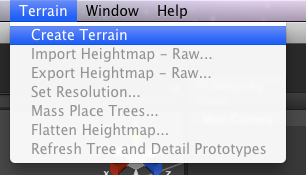 点击Terrain - > Create Terrain 创建一个游戏地形,我们命名为MyTerrain。