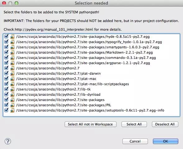 In the next window, select all the folders and click the OK button again to select the folders to add to the SYSTEM python path.