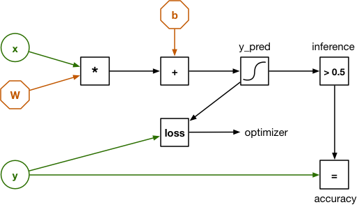 在一切准备就绪之后,我们可以对作为逻辑回归分类器核心的计算流程进行声明了: