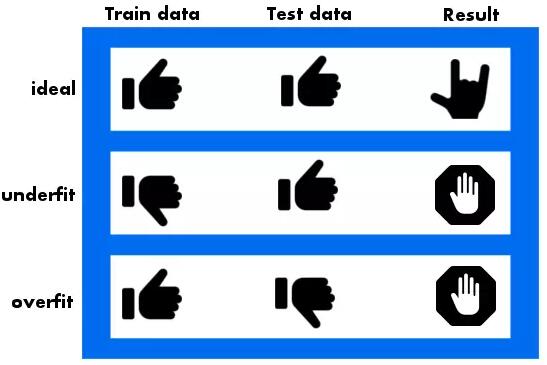 图 3: 理想情况下,最佳拟合曲线同时适用于训练集和测试集。然而,如果看到测试集的表现比训练集更好,那么我们的模型有可能欠拟合。相反,如果在测试集上表现不佳,而对训练集表现良好,那么我们的模型是过拟合的。