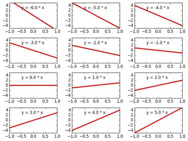 图 1:参数 w 的不同值代表不同的线性方程。所有这些线性方程的集合构成线性模型 M。
