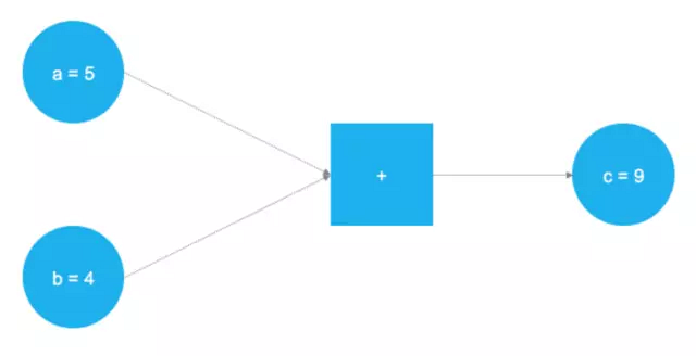 在上图中,两个零维张量(标量)将执行相加任务,这两个张量储存在两个变量 a 和 b 中。这两个值流过图形在到达正方形结点时被执行相加任务,相加的结果被储存在变量 c 中。实际上,a、b 和 c 可以被看作占位符,任何输入到 a 和 b 的值都将会相加到 c。这正是 TensorFlow 的基本原理,用户可以通过占位符和变量定义模型的抽象表示,然后再用实际的数据填充占位符以产生实际的运算,下面的代码实现了上图简单的计算图:
