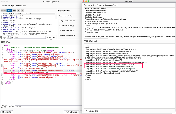 下图中显示的是Burp Suite的CSRF PoC生成器与LazyCSRF之间在显示多字节字符时的差异。