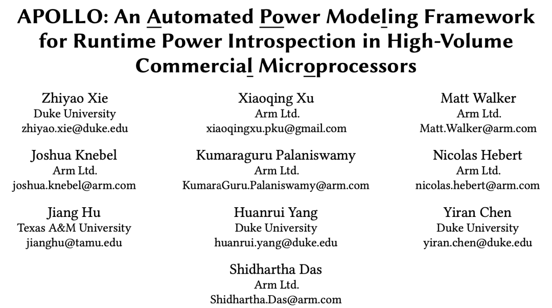 陈怡然:在过去十年中,设计自动化最令人兴奋的趋势是在电子设计自动化(EDA)工具中广泛采用机器学习技术。由于芯片设计质量在很大程度上取决于芯片设计师的经验,因此开发智能的EDA工具是很自然的思路,它可以直接学习如何从先前已有的设计中延承半导体芯片的设计方法,而无需再经历一遍传统的笨重模型。各种机器学习模型已嵌入到最新的EDA流程中,以加速计算的试验路由和布局、功率估计、时序分析、参数调整、信号完整性等。机器学习算法也已经在芯片的硬件模块中实现,以监测和预测芯片的运行时功耗。例如我们的APOLLO框架(获得MICRO 2021 最佳论文奖)。