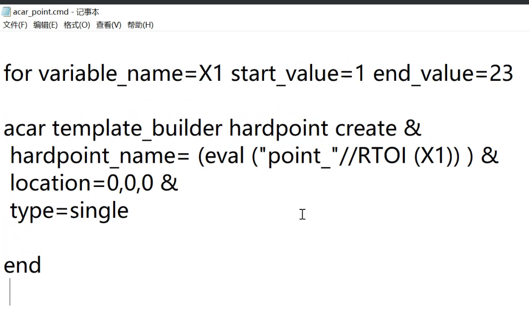 本教程为通过Adams car File Important 导入.cmd命令,然后导入多个坐标点,再切换到View统一修改坐标点坐标。详细记录如何在Adams Car批量化建立坐标点。
