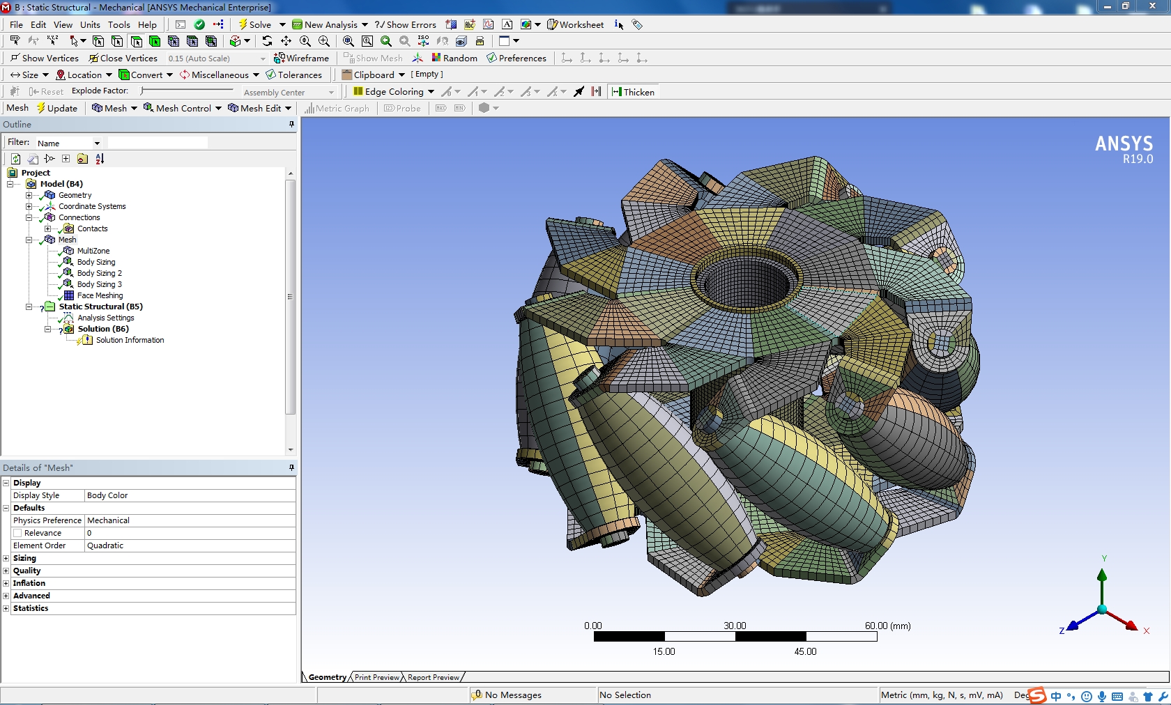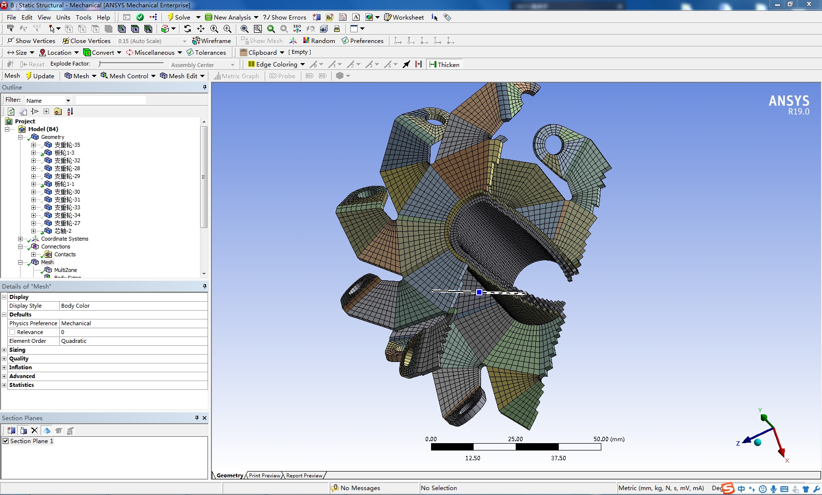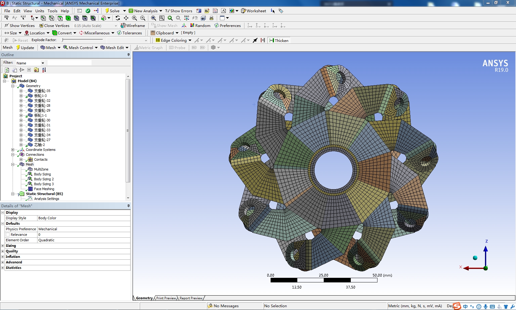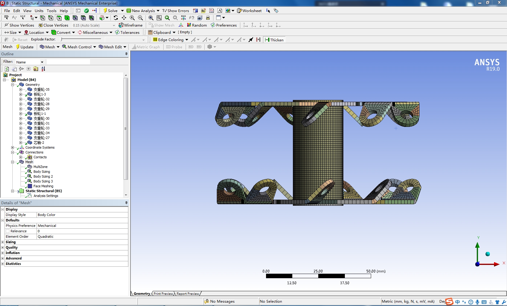 麦克纳姆轮采用solidworks2016建模,并且在soilidworks中切分、装配,导入ANSYS19.0中划分网格,附件为solidworks源文件和切分后源文件和装配文件,源文件的装配文件未装配好,但切分后的文件已检查,装配往后无损,另附划分的workbench源文件,现分享给大家学习,抛砖引玉。