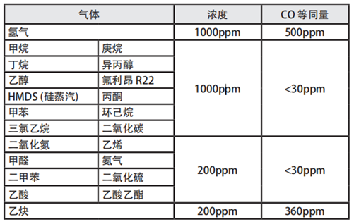 储能电站内会有各种各样的气味,要是传感器抗干扰性不好的话,也是很容易造成误报的,所以这个传感器要求对CO灵敏度高,对其他气体的灵敏度越低越好。TGS5141就很好,对大部分气体的灵敏度都是非常低的,对CO灵敏度又很高的,见下图。