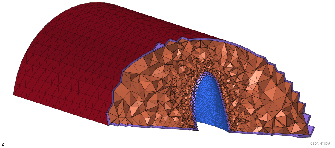 用2d>automesh命令将边界面划分网格,将需要关注的凸起位置的网格细化,管道壁则可以用稍粗的网格,减少计算量。