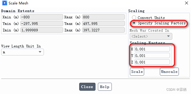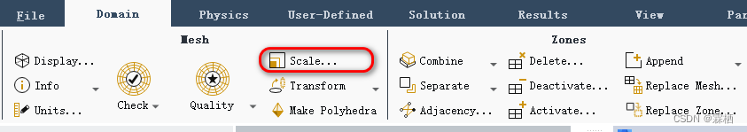 注意单位问题,在Hypermesh内一般使用的是毫米单位,Fluent默认使用的米单位,因此需要将模型整体缩小1000倍