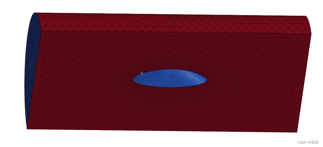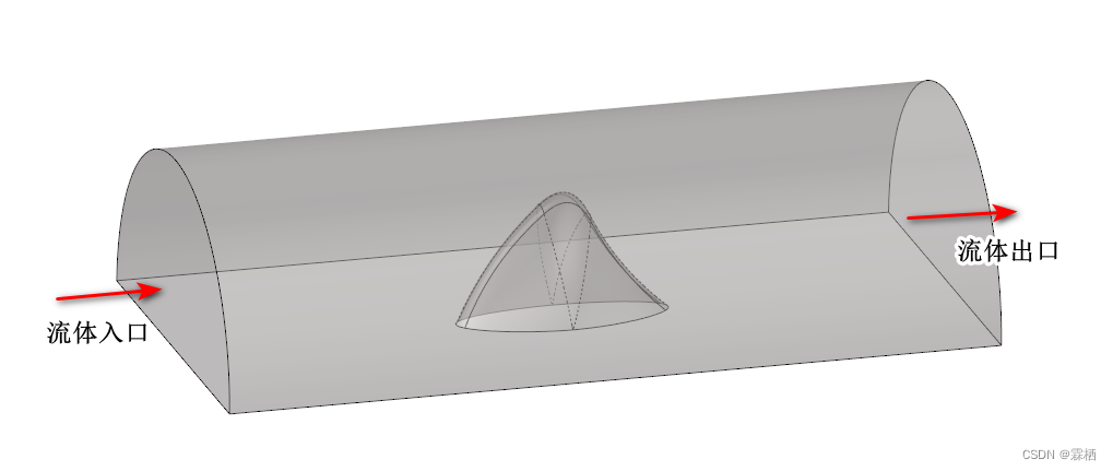 提取管道内表面与凸起物体的外表面,并将管道两头封堵上,并修复拓补关系,形成一个封闭的流体域空间,将管道的一端作为流体的入口,另一端作为出口,如下图所示。