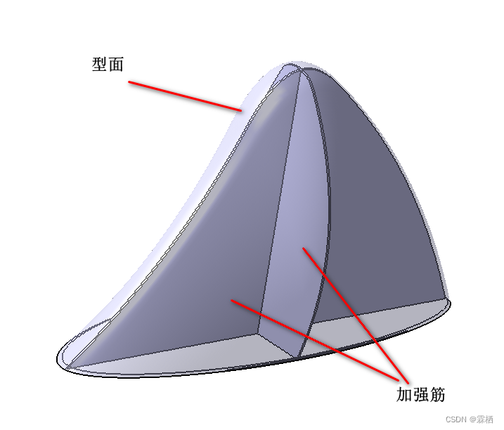 该凸起物体为空心结构,内部有加强筋,加强筋与外型面壁厚都为2mm,以下为凸起物体的内部结构示意