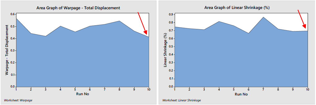 如图九的分区图所示,和其他的九个项目相比,项目10(最优化项目)的翘曲量最小,同时线性收缩也相对较小。