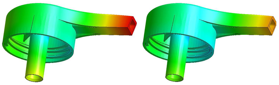 DOE 模拟结果 ( 图十、图十一 ) 显示,此产品翘曲和真圆度都已大幅改善。翘曲量 约改善 了 20% 至 30% ,同时线性 收缩仍 控制在约 0.6% 至 0.7% 。