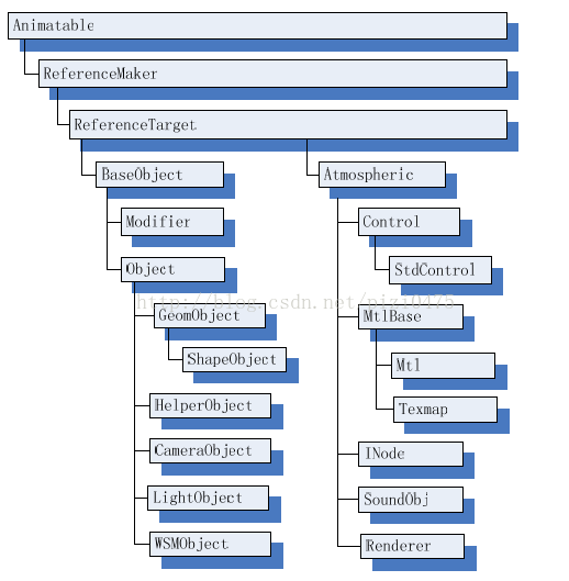 基类:Animatable,ReferenceMaker,ReferenceTarget。其中的继承关系如图4 所示。