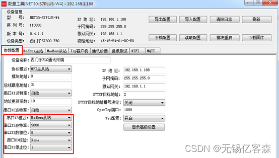 1、将串口X3的模式,配置成 Modbus从站 ;