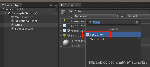 1、给需要点击的物体添加自己编写的脚本"TestClick.cs"