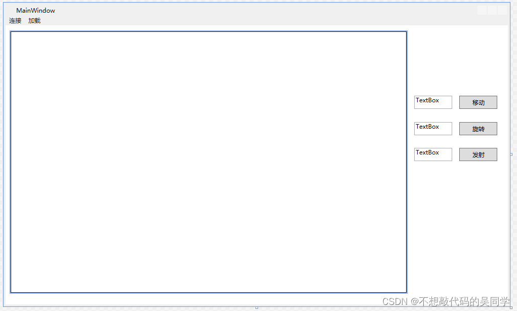 由于展示的是一个小demo,故拿物体简单的移动和旋转举例,故主要添加移动和旋转两个Button,再加两个TextBox作为输入。