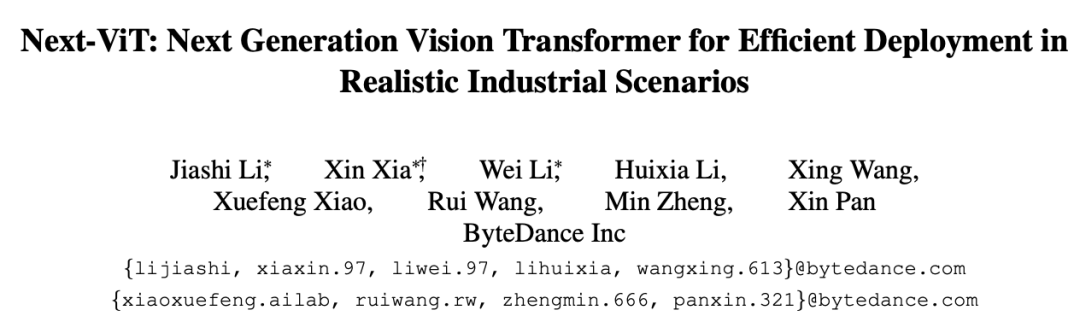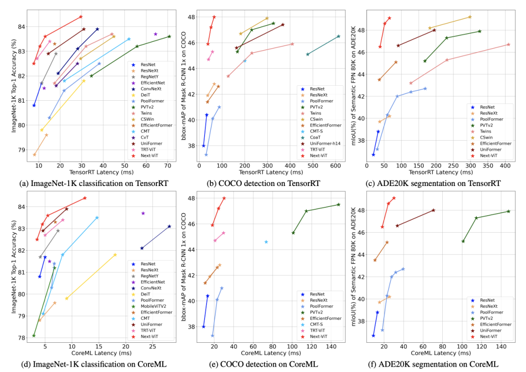 一种用于在现实工业场景中高效部署的下一代 Vision Transformer。它通过引入 Next Convolution Block (NCB) 和 Next Transformer Block (NTB),在局部和全局信息捕获方面取得了显著的性能改进。