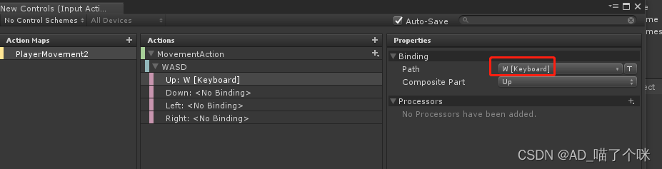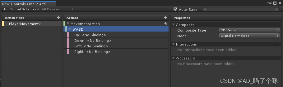 Actions添加:New action 改名为MovementAction