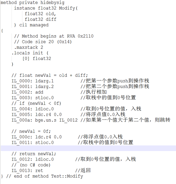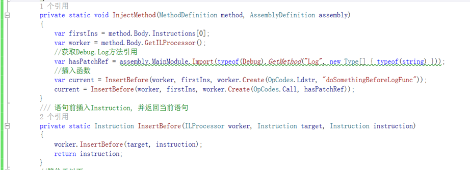 上面是C#逻辑打包成dll后,采用Cecil反编译得到的内容如下,具体逻辑见注释: