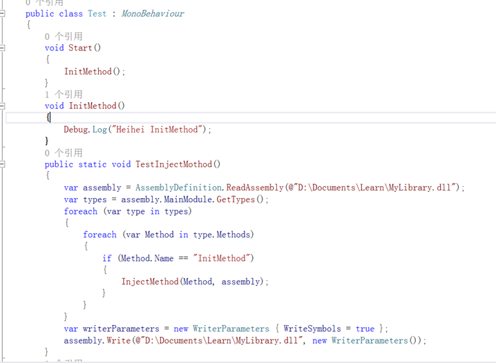 举一个Mono.Cecil例子,这是原始的Unity C#代码: