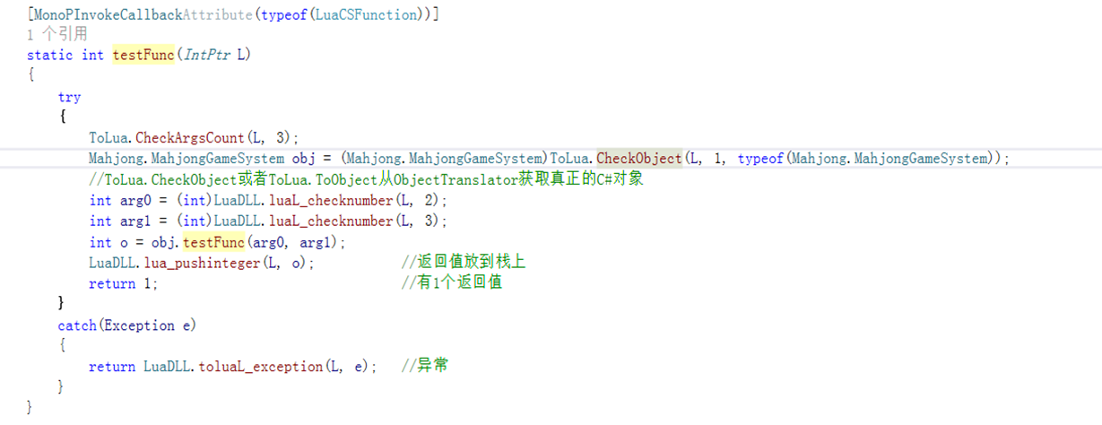 ToLua绑定后生成的代码: