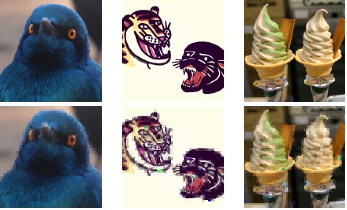 Figure 5. Images compressed with BTC. Original on top, decompressed on bottom.